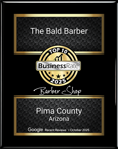 The Bald Barber is Tucson’s go-to barbershop for men’s grooming. Serving Corona de Tucson, Vail, Santa Rita and Sahaurita (and the surrounding areas). Specializing in precision haircuts, straight razor shaves, electric head shaves, beard trims, and beard shaping, we keep it simple: walk-ins only, classic service, and results that speak for themselves. You’ll find us right in the American Legion 109 parking lot off Houghton Road—no membership needed, just good cuts and good company.